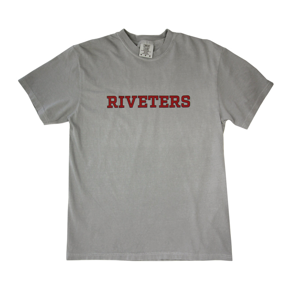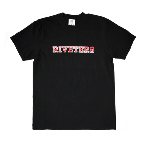 A classic collegiate design on the front with the Riveters mark on the back neckline.